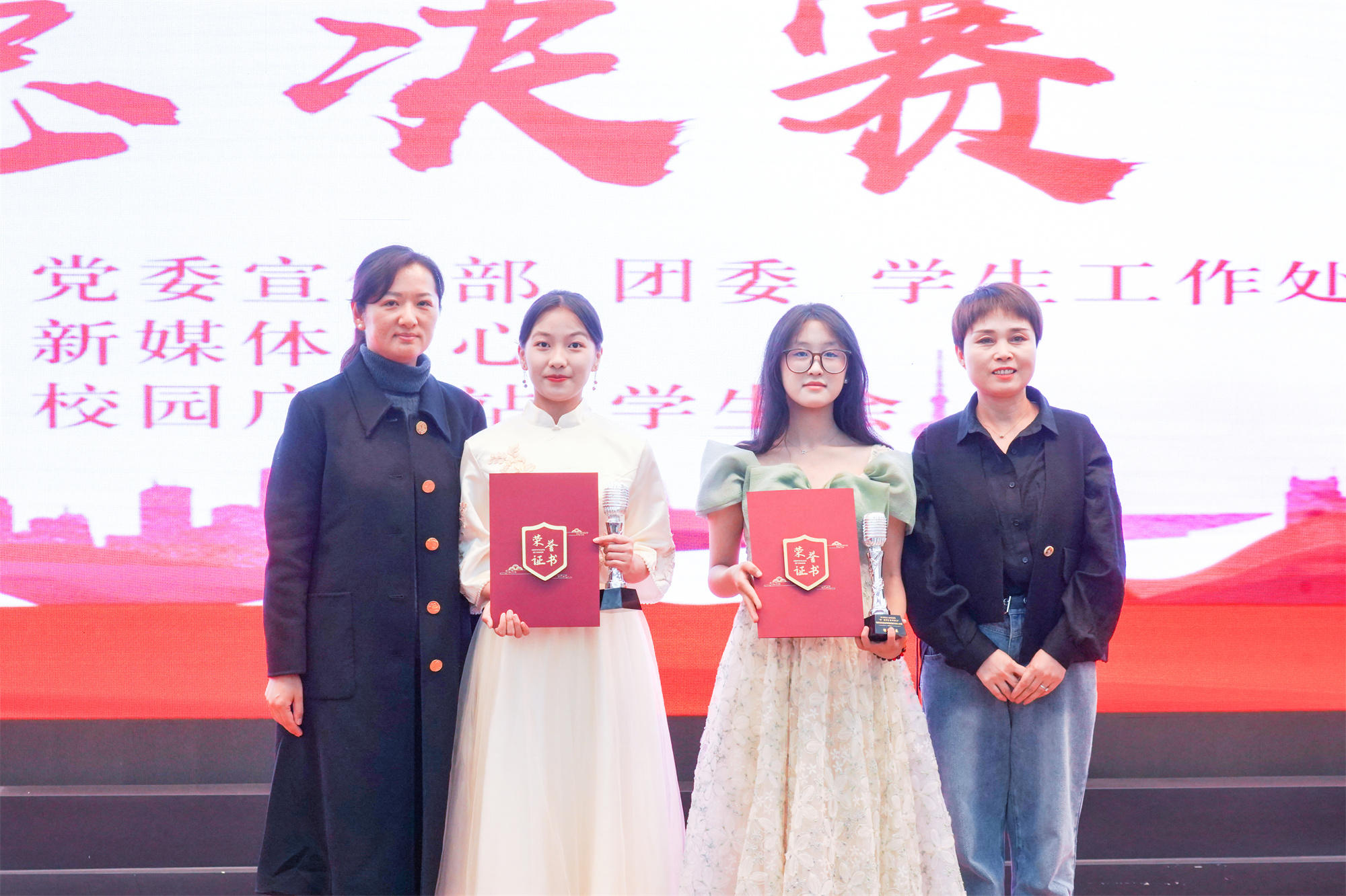 此次比赛自10月底启动,通过初赛、复赛等多轮选拔与淘汰,共有来自全校6个二级学院的17名同学进入决赛。比赛现场,选手们用精彩的自我介绍和各具特色的现场主持赢得了现场观众的阵阵掌声,经过激烈的角逐和比拼,最终决出金话筒奖1名、银话筒奖2名、铜话筒奖3名及优秀奖若干名,与会领导与评委为获奖选手颁发了奖杯和证书。