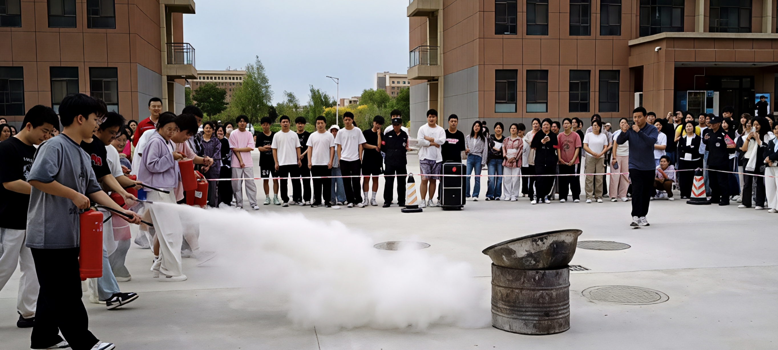 演练前,学院制定方案,明确疏散路线和分工,并邀请消防教官讲解火灾成因、灭火器使用方法及疏散要点。随着警报响起,在辅导员和学生干部引导下,全体人员在3分钟内安全撤离至指定区域。随后,消防教官演示干粉灭火器的正确操作,师生现场进行了实操训练。