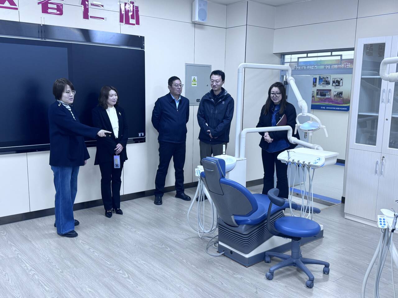 座谈会前,魏轩主任、库莉博主任一行实地参观了口腔医学院数字化实训中心。双方围绕“实训-实习”一体化衔接的核心痛点、关键环节展开现场研讨,为后续实践教学体系的精准优化提供了直观且具操作性的参考依据。