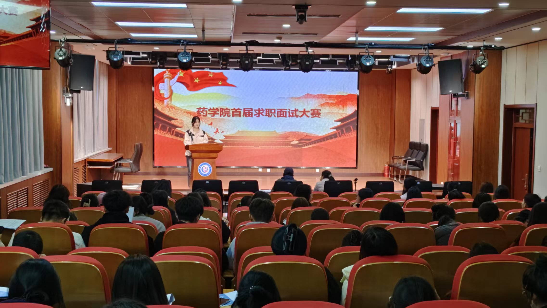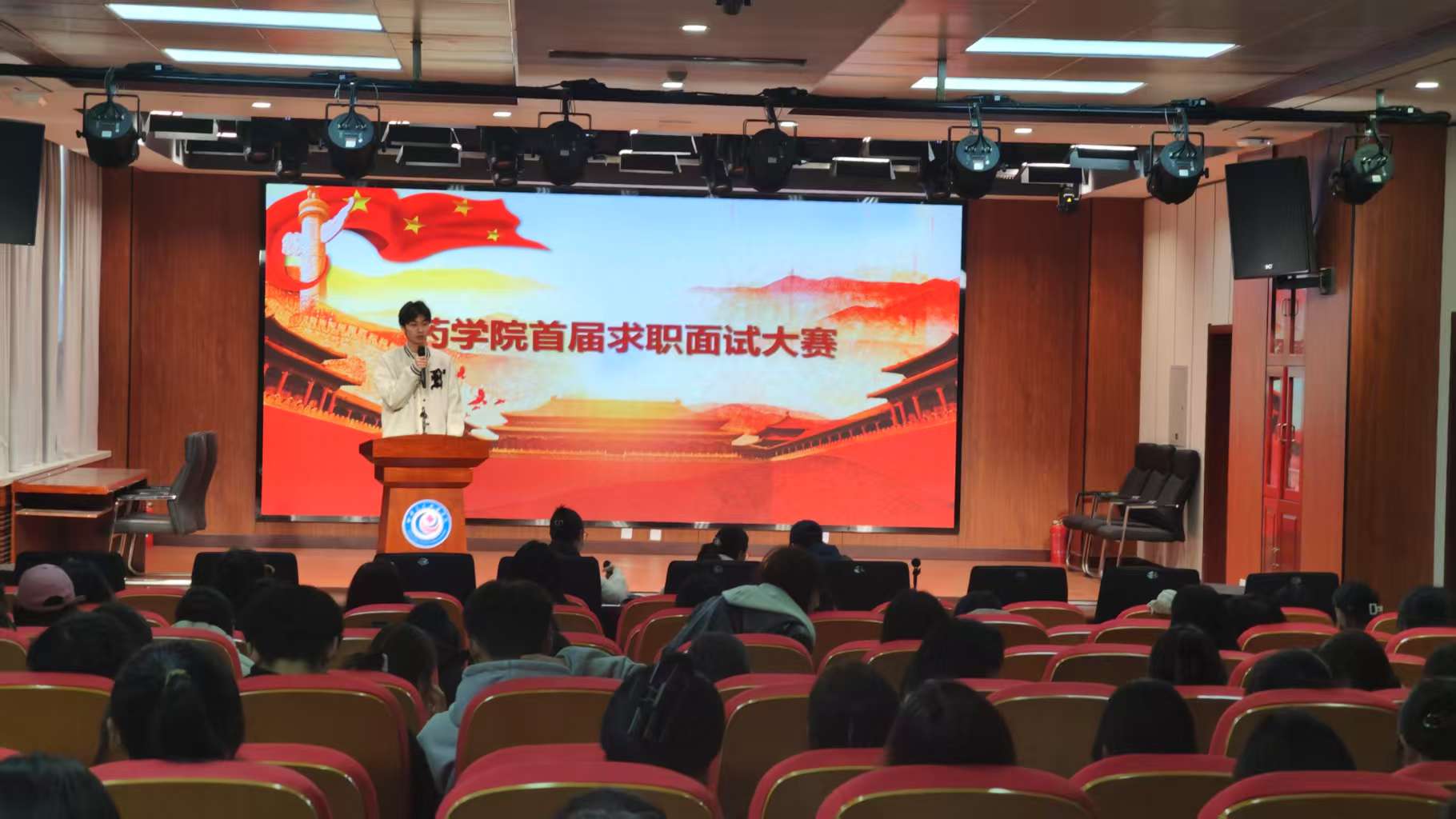 为积极应对当前就业市场新挑战,进一步提高学生求职技能和应对能力,助力学生顺利高质量就业,3月19日下午,药学院首届以“职面未来,尽显才华”为主题的求职面试大赛在岐黄楼一楼报告厅拉开序幕。药学院领导及负责老师担任活动评委,2023级中药学31班全体学生参加比赛。