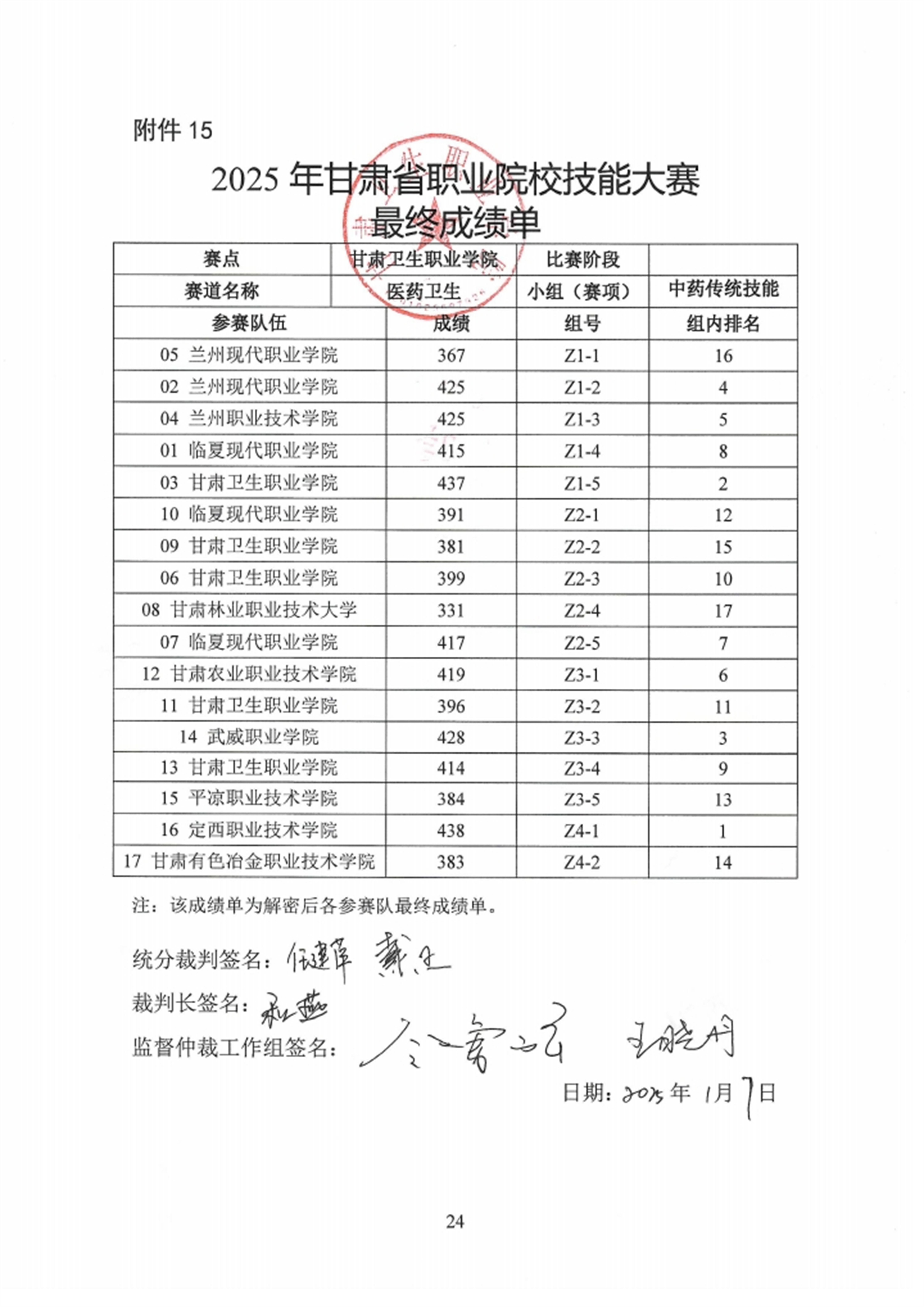 2025年甘肃省职业院校技能大赛英国365上市官网赛点中药传统技能赛项成绩公示