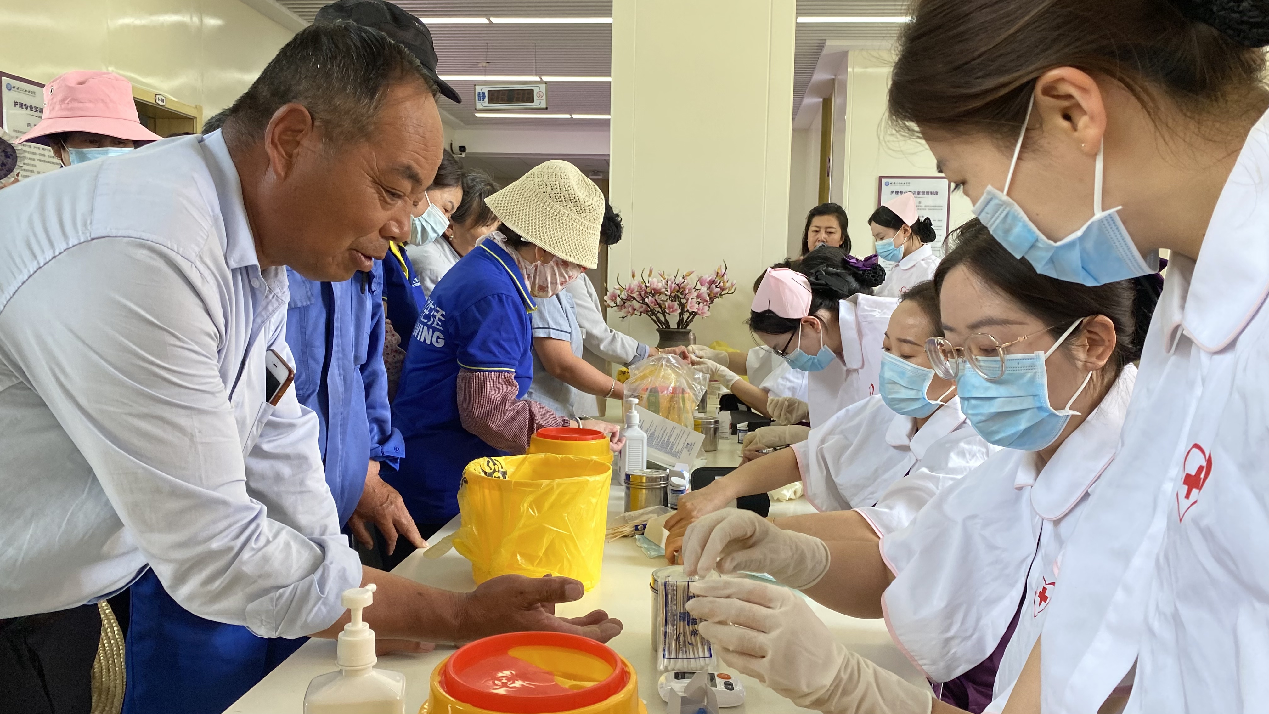 6月20日下午,护理学院中国南丁格尔志愿服务队431分队组织了一场主题为“关爱校园守护者,健康同行护未来”的血糖检测活动。护理实训教师与志愿者们携手,为校园保洁员、保安人员及园艺工人提供专业血糖检测服务,并普及健康知识,增强其慢性疾病预防意识。活动现场秩序井然,教师和志愿者们以耐心细致的服务赢得广泛赞誉。