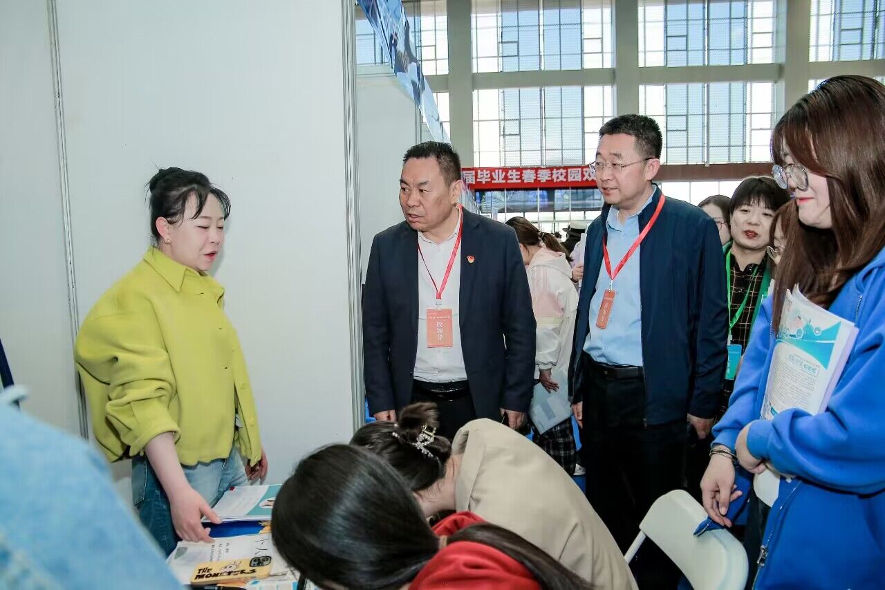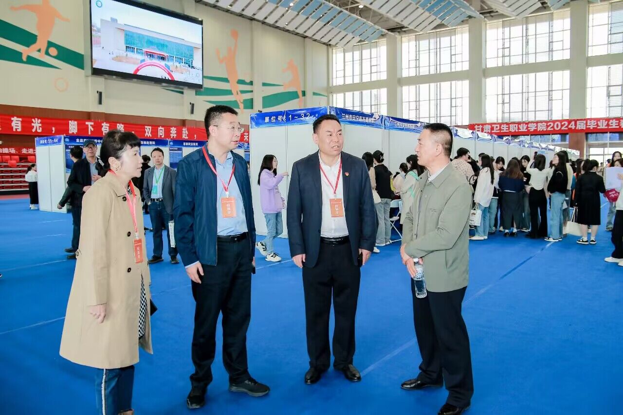 4月12日,学校2024届毕业生春季校园双选会在体育馆举行。来自西北地区、西南地区、长三角地区等省内外近百家用人单位现场“摆摊设点”,提供就业岗位3000余个,我校2500余名未就业毕业生、培黎职业学院护理专业的100余名毕业生进场谋职。学校党委书记包磊、校长王建成、副校长张军荣到现场指导工作,并与用人单位、求职毕业生亲切交流。