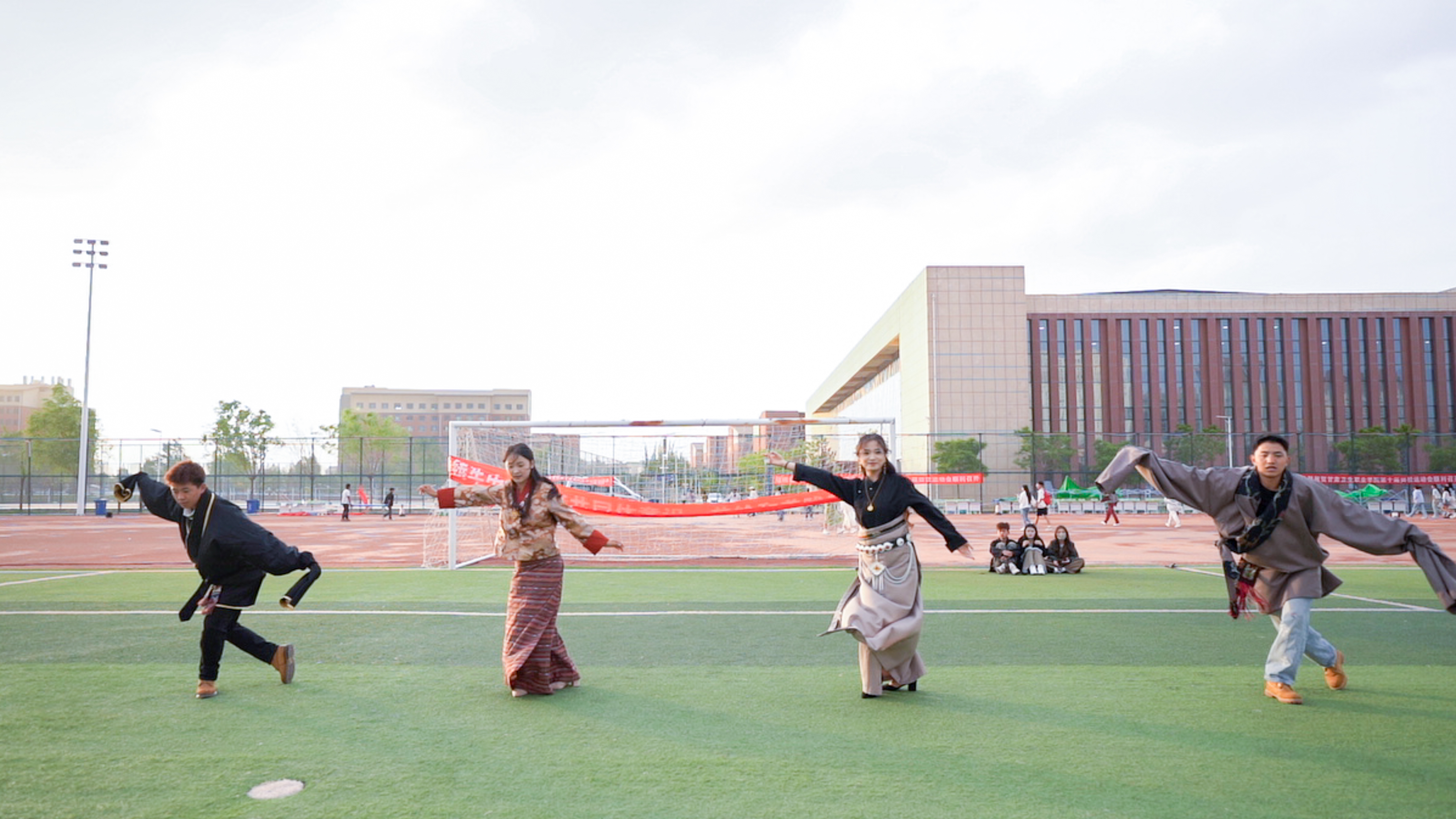 活动现场,近千名同学在草坪席地而坐,各民族学生同台唱歌、跳舞,有极具民族特色的歌曲和舞蹈,也有耳熟能详的各地民歌,还有非遗喷火表演,一首《大中华》引起全场合唱,气氛热烈融洽。现场还设置了中国传统文化知识竞答环节,现场派送香包、花绳等端午节礼品,同学们在传统文化体验中增进情感交流。活动最后,同学们在操场围成一圈,手拉手跳起锅庄舞,将气氛再次推向高潮。