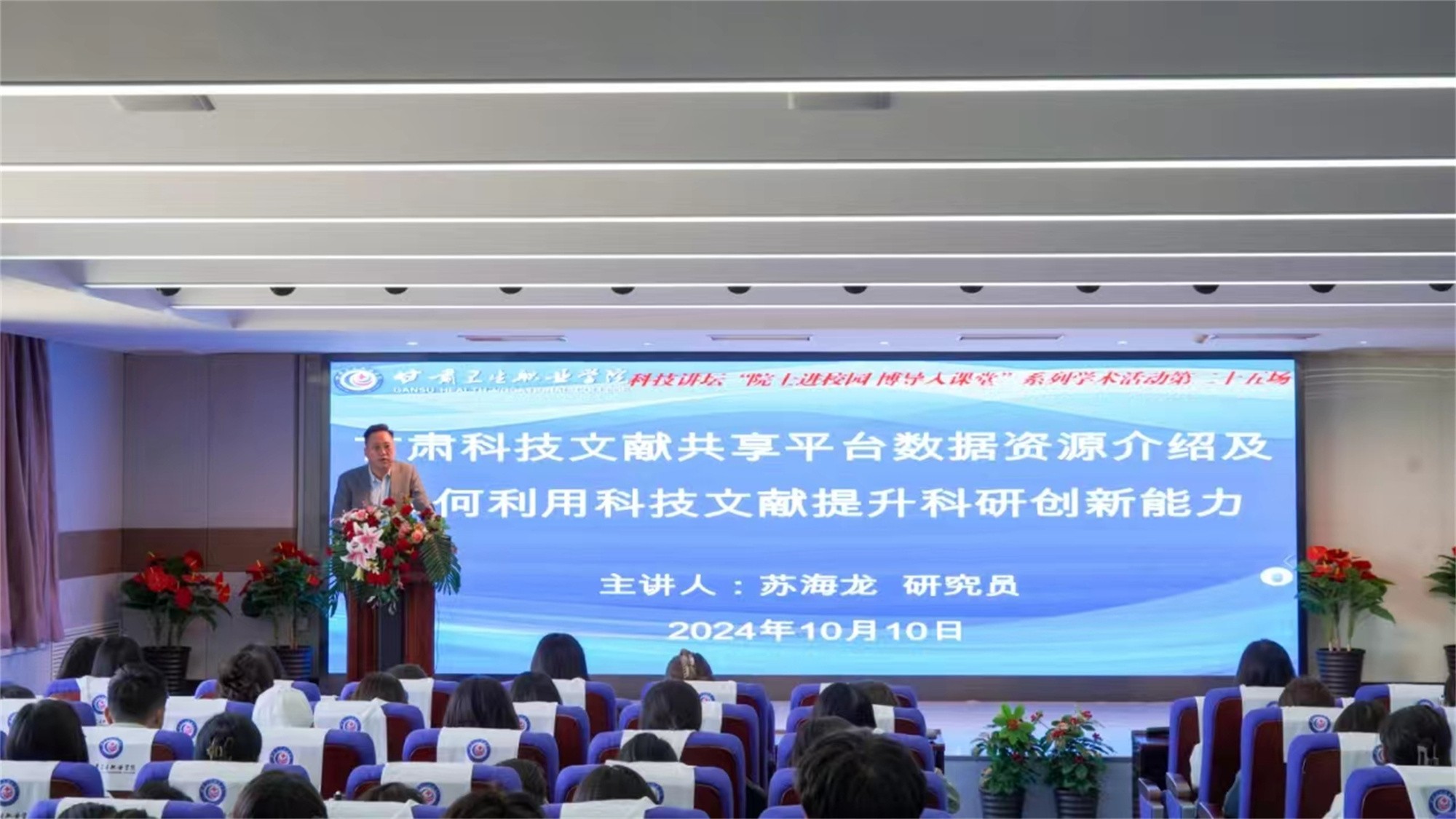 学校科技讲坛“院士进校园 博导入课堂”系列学术活动第二十五场 ——如何利用科技文献提升科研创新能力发布时间:2024-10-11 -